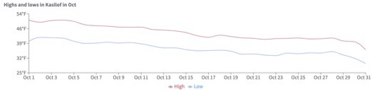 Dress warm for rain. High temp are mid 50’s, lows can be 35* to below freezing in the mornings